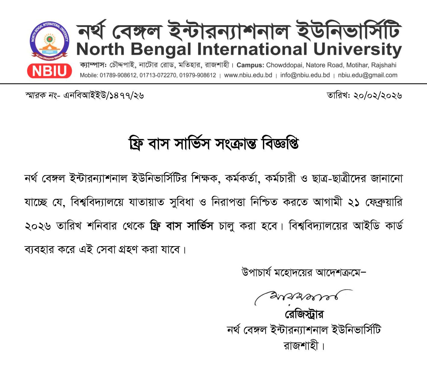 North Bengal International University (Bengali: নর্থ বেঙ্গল ইন্টারন্যাশনাল ইউনিভার্সিটি), a beacon of educational excellence was established on 15 September, 2013 with the approval and endorsement of the Government of the Peoples Republic of Bangladesh and UGC (University Grants Commission). Our university, guided by a vision of academic prowess and social advancement, is proud to host a diverse community of students, faculty, and staff from around the globe.