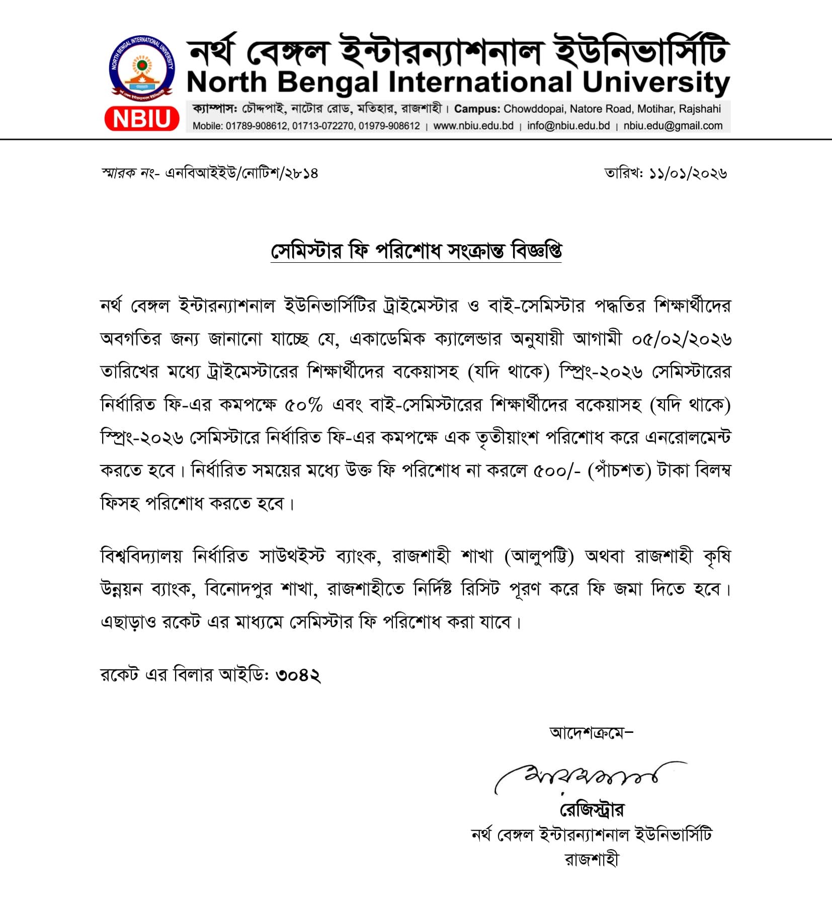 Join us as we embark on a journey of discovery, innovation, and collaboration. Whether you're a prospective student, a dedicated faculty member, or a passionate researcher, we welcome you to be a part of our vibrant academic community at North Bengal International University.