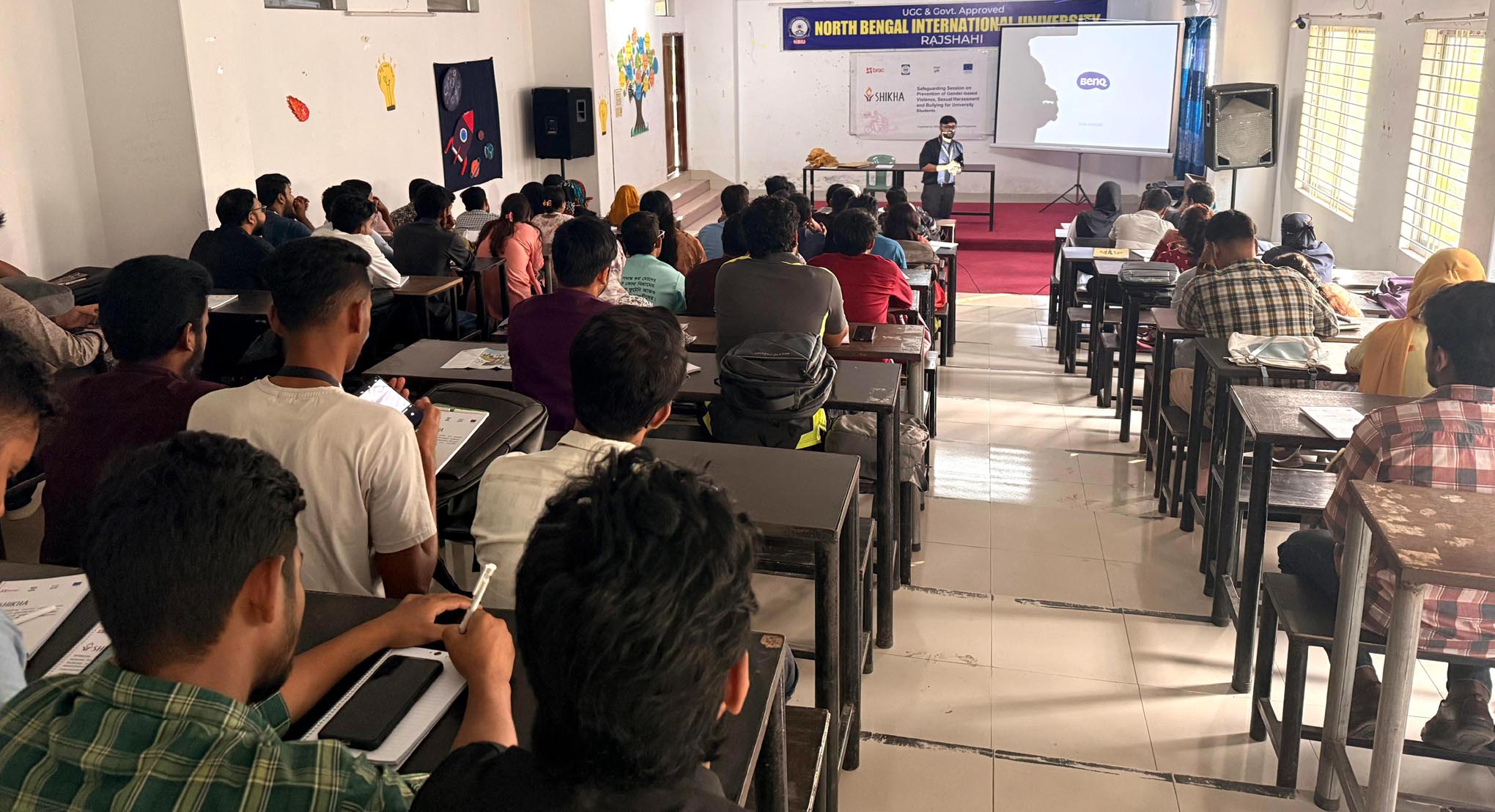 প্রেস বিজ্ঞপ্তি : নর্থ বেঙ্গল ইন্টারন্যাশনাল ইউনিভার্সিটিতে ব্র্যাক সোশ্যাল কমপ্লায়েন্স ‘শিখা প্রকল্প’র উদ্যোগে শিক্ষক-শিক্ষার্থী, কর্মকর্তা-কর্মচারীদের তিনদিনব্যাপী সচেতনতামূলক প্রশিক্ষণ অনুষ্ঠিত হয়েছে। সোমবার (২৭-২৯ অক্টোবর, ২০২৫) থেকে শুরু হয়ে বৃহস্পতিবার শেষ হয়। রাজশাহীতে নারীদের প্রতি সহিংসতা প্রতিরোধে কাজ করছে ‘শিখা প্রকল্প’। এই প্রকল্পের আওতায় জেন্ডার বেসড ভায়োলেন্স, বুলিং এবং যৌন নির্যাতন প্রতিরোধে নর্থ বেঙ্গল ইন্টারন্যাশনাল ইউনিভার্সিটি অভ্যন্তরীণ শিক্ষক, শিক্ষার্থী, কর্মকর্তা ও কর্মচারী নিয়ে এই সুরক্ষা সচেতনতা বিষয়ক ট্রেনিং সেশন অনুষ্ঠিত হয় । রাজশাহীতে নারীদের প্রতি সহিংসতা প্রতিরোধে ইউরোপীয় ইউনিয়নের অর্থায়নে ব্র্যাক সোশ্যাল কমপ্লায়েন্স এর অধীনে কাজ করবে ‘শিখা প্রকল্প’। যা জেন্ডারভিত্তিক সহিংসতা, হয়রানির প্রতিরোধ এবং প্রতিক্রিয়া জোরদার করে ব্যক্তিগত ও জনপরিসরে নারীর জন্য নিরাপদ পরিবেশ তৈরির লক্ষ্যে কাজ করবে। আগামী চার বছরে প্রকল্পটি রাজশাহীসহ পাঁচটি গুরুত্বপূর্ণ জেলায় বাস্তবায়িত হবে। রাজশাহী জেলায় ৯টি উপজেলার ৬০টি স্কুল ও ৪টি ইউনিভার্সিটি নিয়ে কাজ করবে। এরই ধারাবাহিকতায় সোমবার নর্থ বেঙ্গল ইন্টারন্যাশনাল ইউনিভার্সিটি আয়োজিত ‘শিখা প্রকল্প’র শিক্ষকদের সচেতনতামূলক ট্রেনিং সেশন অনুষ্ঠিত হয়। এই অনুষ্ঠানে প্রধান অতিথি হিসেবে উপস্থিত ছিলেন, নর্থ বেঙ্গল ইন্টারন্যাশনাল ইউনিভার্সিটি ভারপ্রাপ্ত উপাচার্য প্রফেসর মো. আনসার উদ্দিন, বিশ্ববিদ্যালয়টির যৌন নির্যাতন বিষয়ক প্রতিরোধ কমিটির সেক্রেটারি ড. নাসরিন লুবনা। শেষদিন বৃহস্পতিবার ট্রেনিং সেশনটি পরিচালনা করেন ব্র্যাক সোশ্যাল কমপ্লায়েন্স এর সিনিয়র সোশ্যাল কমপ্লায়েন্স ডেভেলপার রাশেদ-উজ-জামান ভুঁইয়া। এই কর্মশালার মাধ্যমে কর্মস্থলে লিঙ্গভিত্তিক সহিংসতা, বুলিং ও যৌন হয়রানি বিষয়ে সচেতনতা বৃদ্ধি এবং নিরাপদ ও সম্মানজনক পরিবেশ গড়ে তোলার গুরুত্ব তুলে ধরা হয়। এসময় শিখা প্রকল্পের কর্মকর্তাগণ এই প্রশিক্ষণ প্রদান করেন।